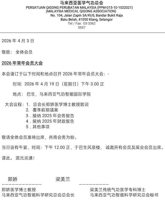 19/04 马来西亚医学气功总会常年会员大会